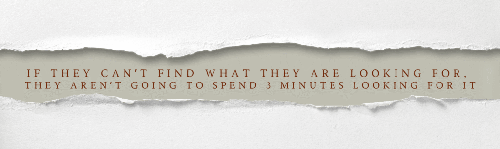 THE REALITY: Life is a hustle these days. We move a million miles a second running our businesses, and honestly, so do your clients and customers. If they cannot find what they are looking for on your site, they aren’t going to spend 3 minutes hunting for it.